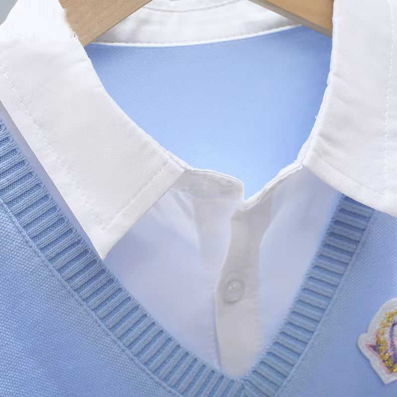 2022 Girls' Autumn Long-Sleeve T-Shirt – Fake Two-Piece (Polo, Bottoming)