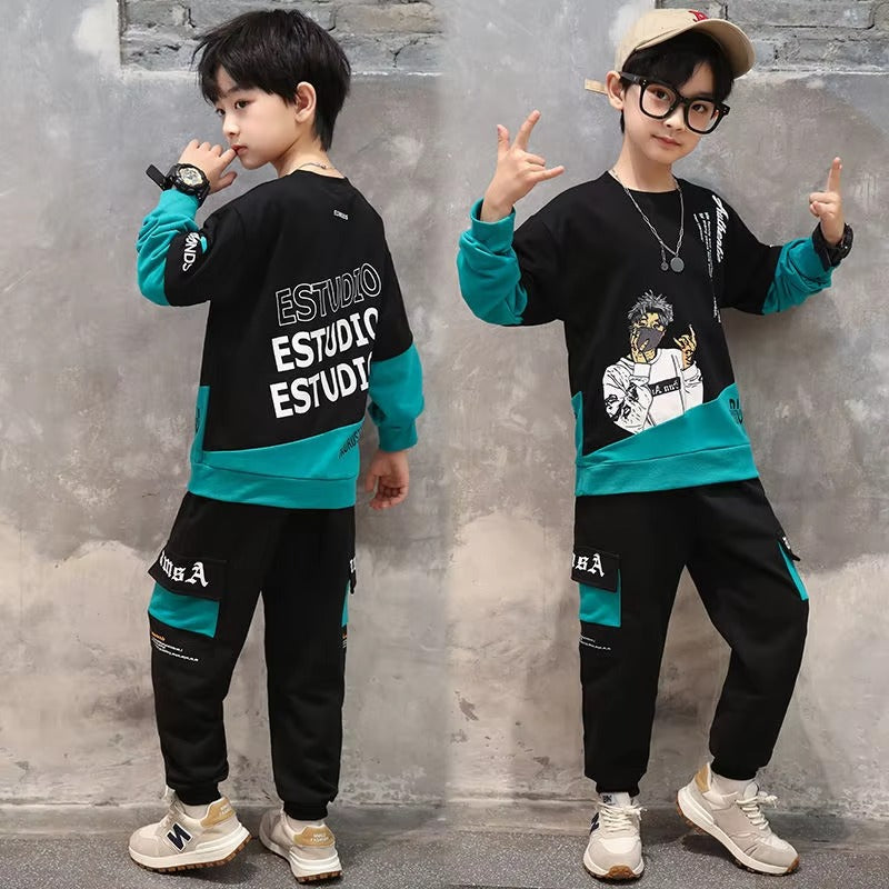 Boys' 2-Piece Sports Suit – Spring/Auto/Winter (Long-Sleeve, T-shirt & Pants)