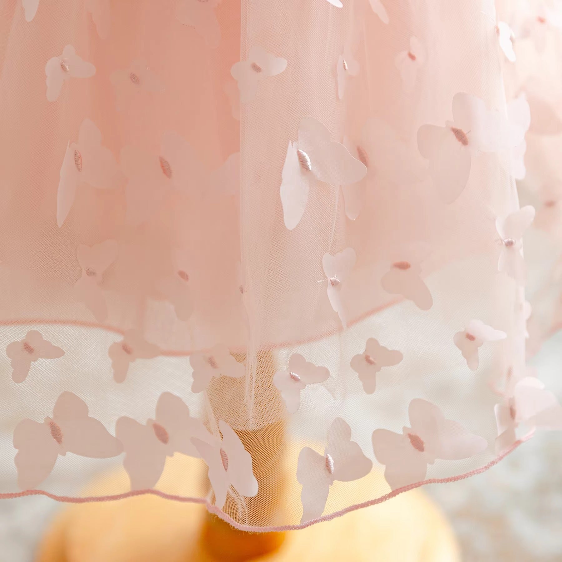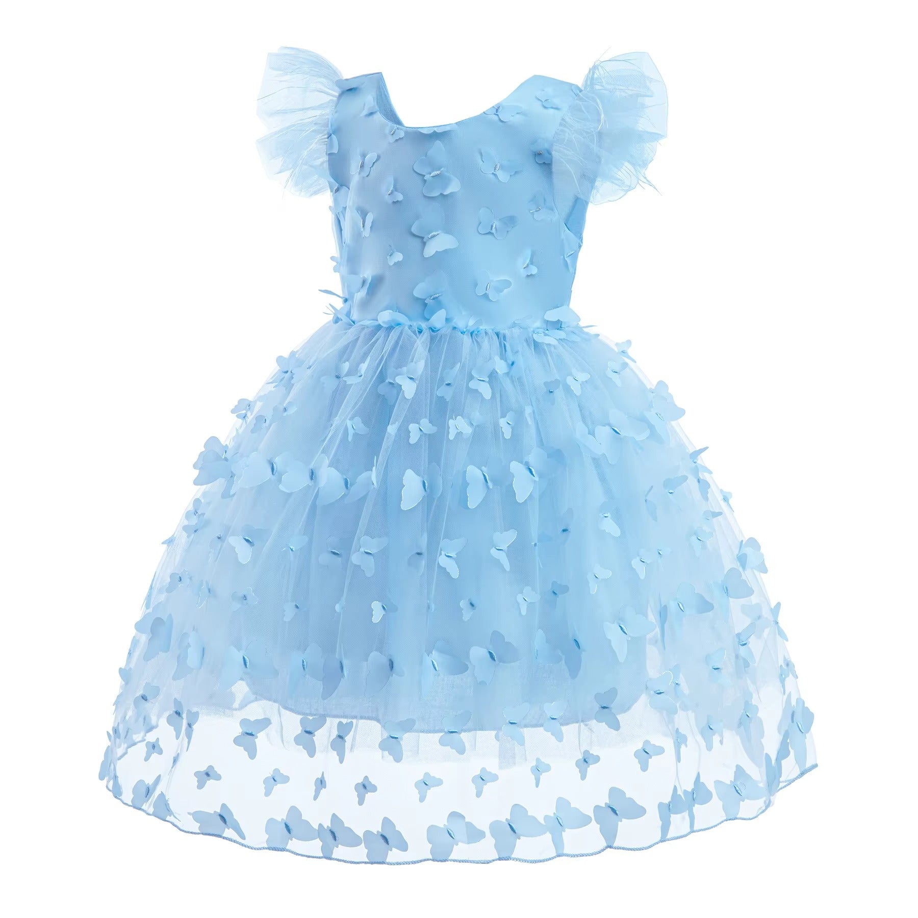 USA Dropshipping Girls' Princess Dresses – 3D Butterfly, Embroidered Feather